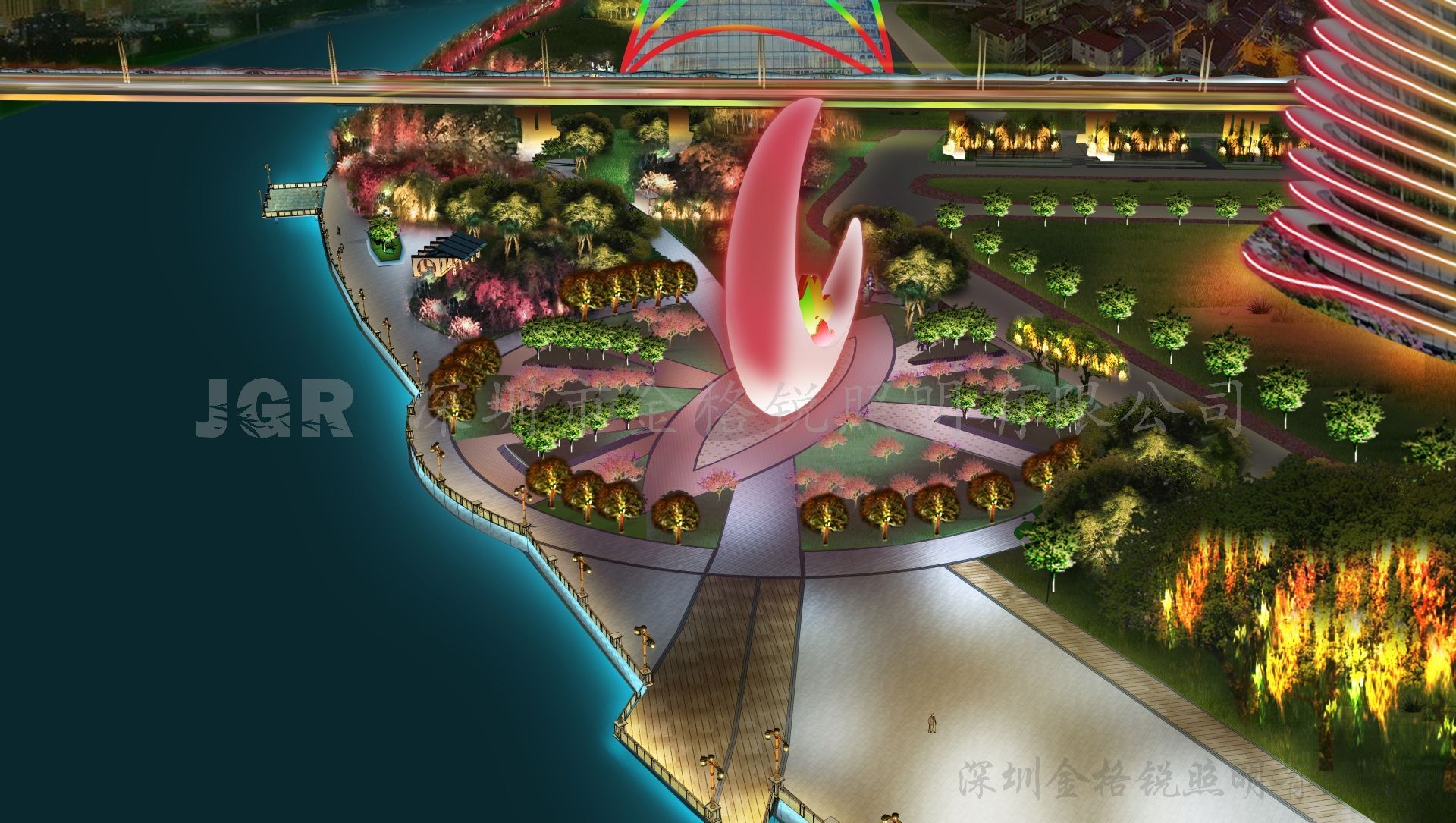 打造唯美的夜景景觀,通過對(duì)樓體燈光的多媒體顯示效果打造,用多彩的色彩變化與水自成倒影的相互效果,創(chuàng)造出七彩麻涌之水鄉(xiāng)特色。