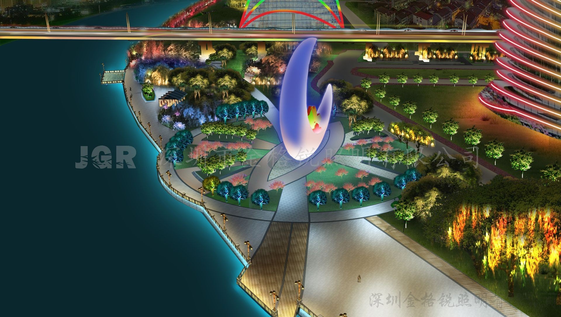 | 夜景簡介 | 同時(shí),將打造唯美的夜景景觀,通過對(duì)樓體燈光的多媒體顯示效果打造,用多彩的色彩變化與水自成倒影的相互效果,創(chuàng)造出七彩麻涌之水鄉(xiāng)特色。其中,半月型雕塑采用彩色光與周圍的環(huán)境光融為一體,用水紋效果使月亮浮潛于水上一般,并通過燈光色彩來改變月亮不同時(shí)段的色感。 |